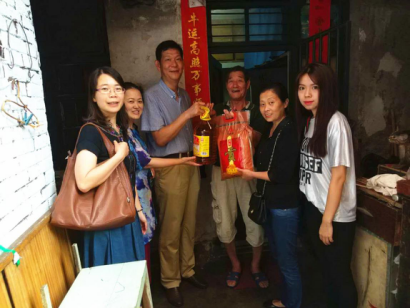党群工作部的组织带领下,党员志愿者一行人冒雨涉水前往福山巷社区,慰问退休困难老党员,考虑南昌连日暴雨,老同志出行不便,党员志愿者给老同志送来油米等生活用品。老同志接过慰问品,连声说道:“感谢组织,感谢党......”