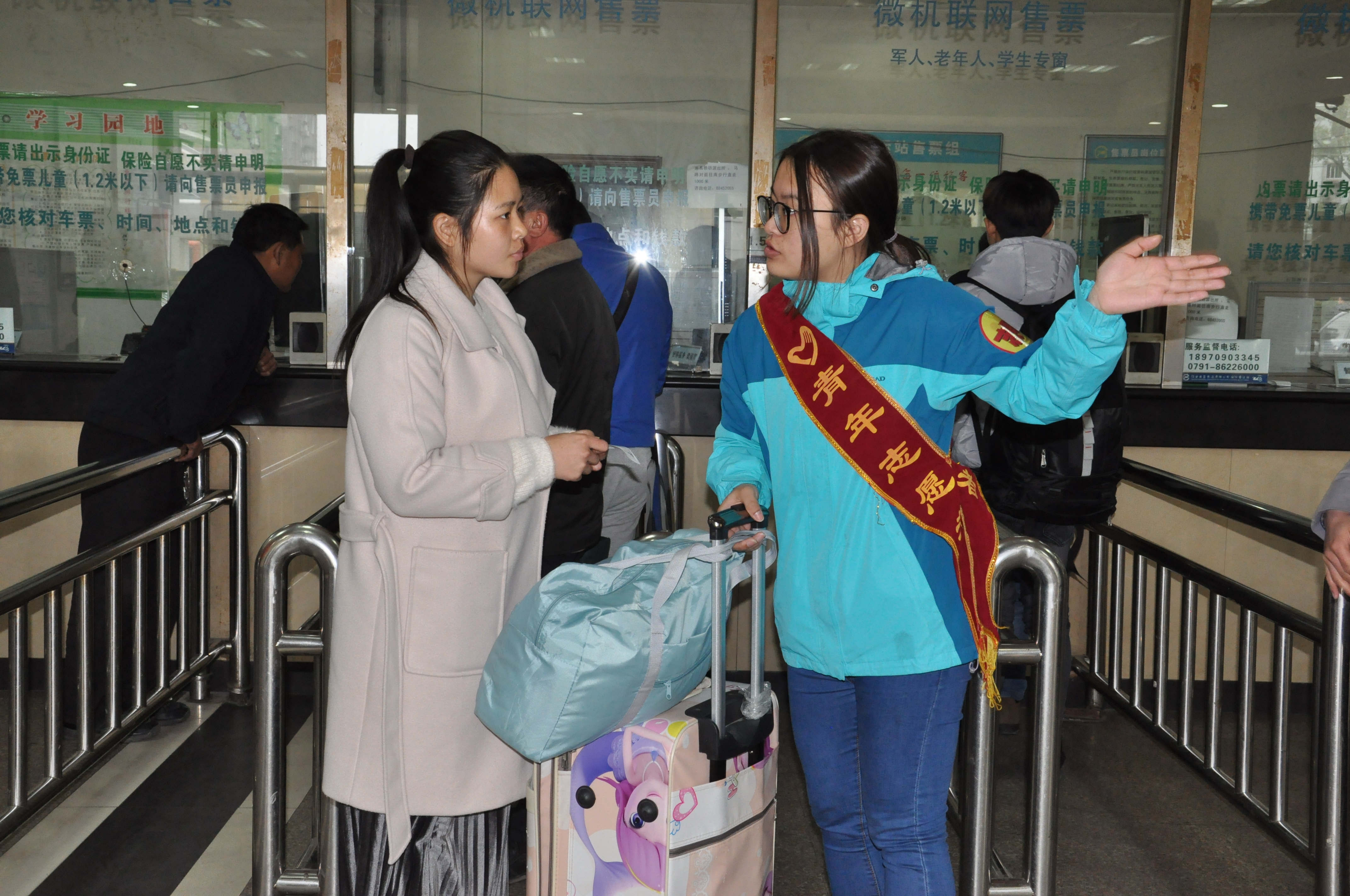 经徐坊客运站负责人统一安排,志愿者们三三两两为一组,被分派到了各个岗位上,有的在检票处站岗,检查身份证和车票;有的在售票厅维持秩序,确保排队购票井然有序;有的在候车大厅帮老弱病残孕及带小孩的乘客减轻负担,顺利检票进站。平日里看似简单的工作,当志愿者们亲自参与后感受到了客运站一线工作人员的辛劳。作为一名志愿者,共青团员们认真负责地帮助每一位有需要的乘客,积极弘扬“学习雷锋、奉献社会、提升自我”的精神。