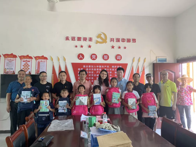 7月28日中午,进贤县分公司党支部书记、经理徐卉同志带领支部委员、党员干部们顶着烈日赶到70公里外的扶贫挂点村三里乡金红村开展“守望相助、传递爱心”关爱留守儿童主题走访慰问。活动现场,分公司党员干部们与金红村所有留守儿童相聚在一起,将装有假期好书的爱心书包一一送到他们手中。同时叮嘱孩子们要立下志愿、努力学习,成长为对社会、对国家有用的人。背着爱心书包,捧着一摞摞假期好书,孩子们深深感受到来自新华书店阿姨叔叔们的关心、来自社会的关爱,脸上洋溢出纯真灿烂的笑容,纷纷表示一定努力学习,长大后也用自己的力量来回报社会。