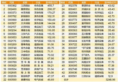 江西省境内上市公司总市值排名